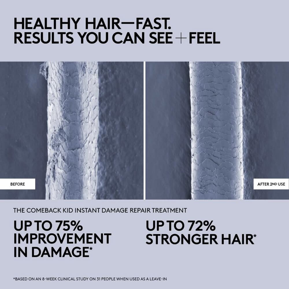 يُعدّ علاج الشعر “ذا كومباك كيد” من فينتي هير، المُصمّم لإصلاح التلف الفوري، حلاً احترافياً لإصلاح روابط الشعر، حيث يتغلغل بعمق في قشرة الشعر، مُوفّراً إصلاحاً شاملاً من الداخل إلى الخارج، ومُقوّياً للشعر التالف. يعتمد هذا العلاج على مُركّب “ريبلينيكور-5” الحصري، الذي يحتوي على أحماض أمينية ومستخلص بذور الشيا، ويهدف إلى إصلاح الأطراف المتقصفة، والحدّ من التكسّر، وتحسين مرونة الشعر.