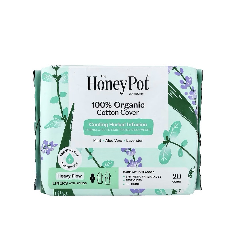 HONEY POT- غطاء من القطن العضوي 100% من شركة هوني بوت، بطانات بأجنحة، ثقيلة، 20 قطعة