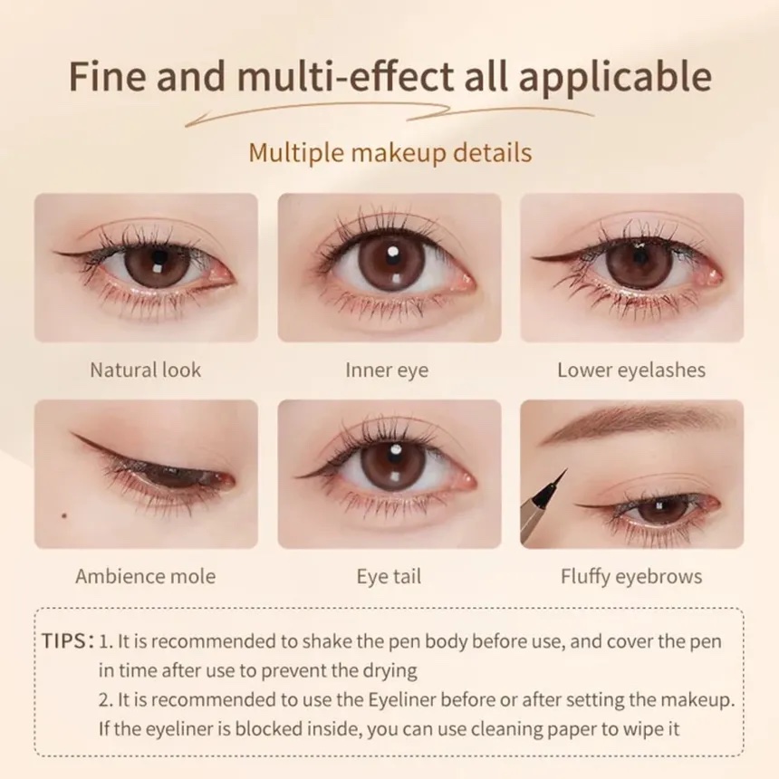 يتميز هذا الكحل السائل برأس فرشاة دقيق للغاية (0.014 مم) لسهولة التحكم والتطبيق الدقيق. تركيبة مقاومة للماء والعرق تضمن ثباتًا يدوم طويلًا دون تلطخ. بفضل لونه الناعم والمتجانس، يساعد الكحل على رسم خطوط رفيعة وناعمة للحصول على مظهر طبيعي.