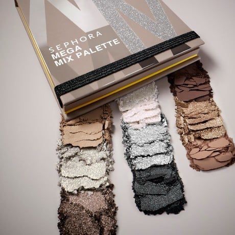 تحتوي لوحة ميجا ميكس على 9 ظلال عيون بتشكيلة متنوعة من القوام والألوان، مرتبة في مجموعات ثلاثية لسهولة المزج والتنسيق. تتضمن ظلال عيون كريمية مطفية بلمسة نهائية بودرية، بالإضافة إلى ظلال معدنية، لامعة، ومطفية بالكامل، يمكن استخدامها منفردة أو مجتمعة.